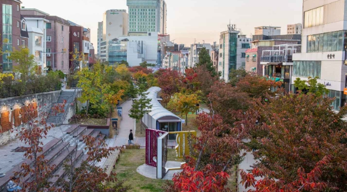 Surnommé le "Yeontral Park", cet ancien chemin de fer converti en parc linéaire à Yeonnam-dong est le spot parfait pour un pique-nique urbain au coucher du soleil.